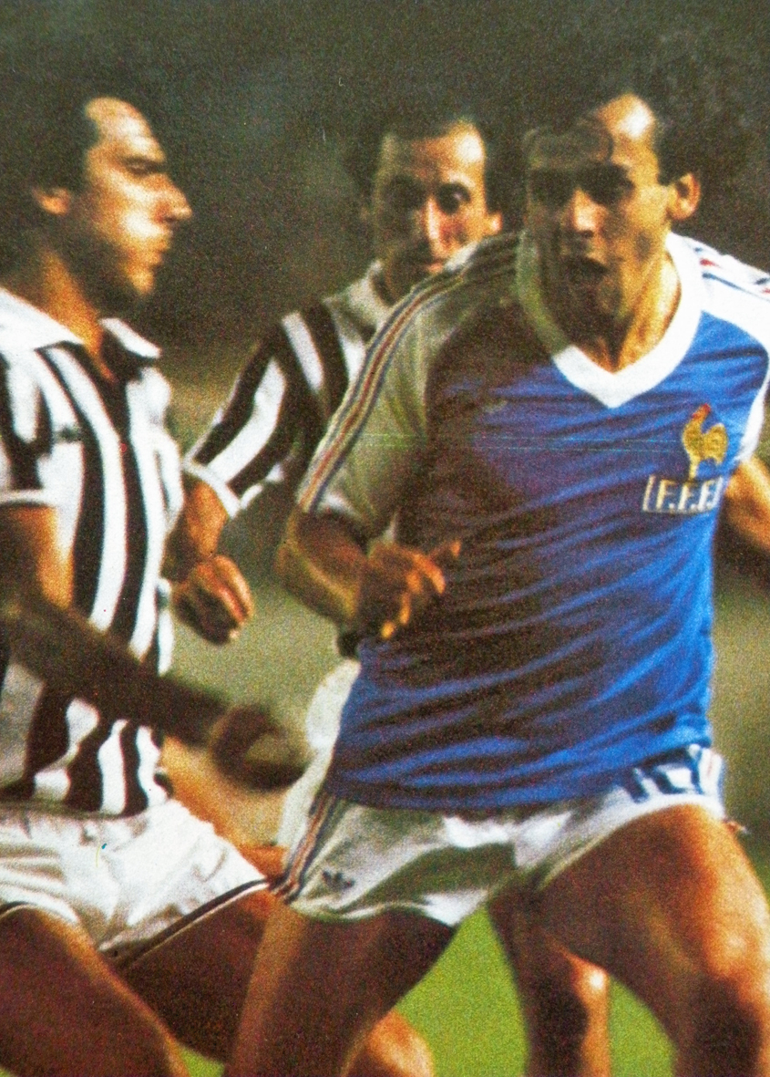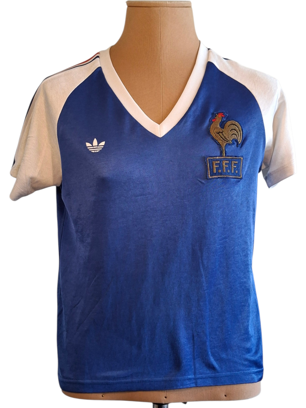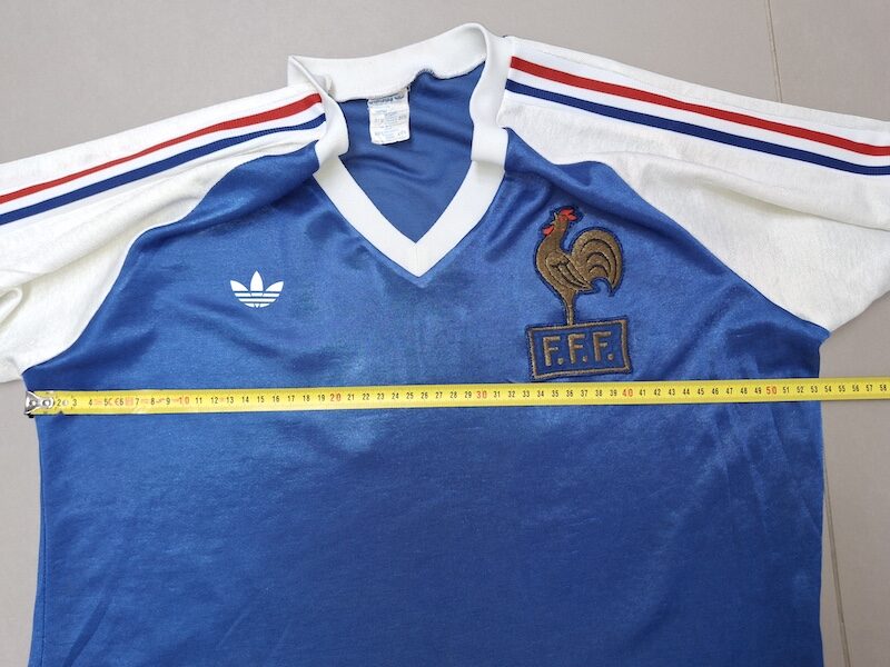 Maillot identique a celui porté par les bleus en deuxième mi temps du match amical France – Juventus le 3 septembre1980