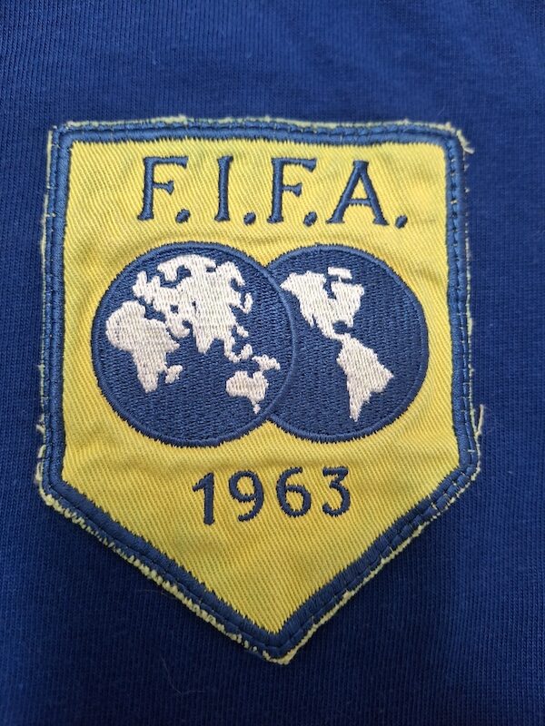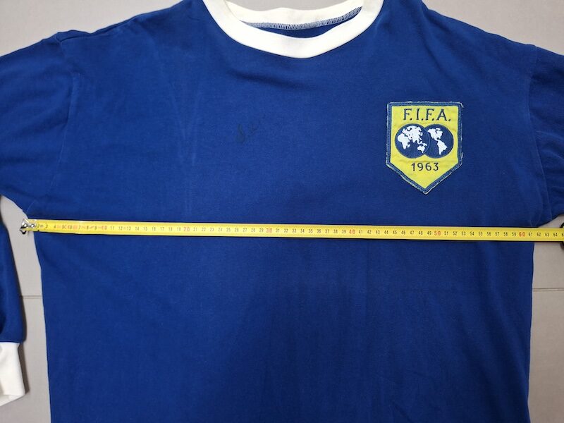 Maillot replica du maillot porté par la sélection du monde contre l’angleterre en 1963 pour célebrer les 75 ans de la FIFA comportant une selection de joueurs tels que Raymond Kopa, Denis Law, Eusébio et Alfredo Di Stéfano
