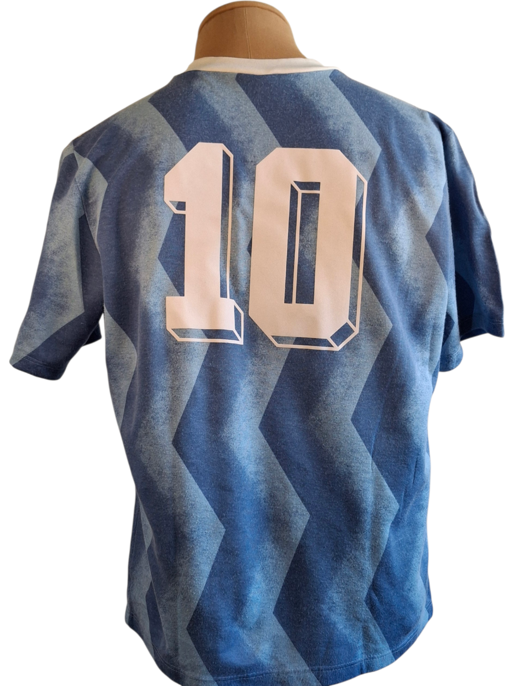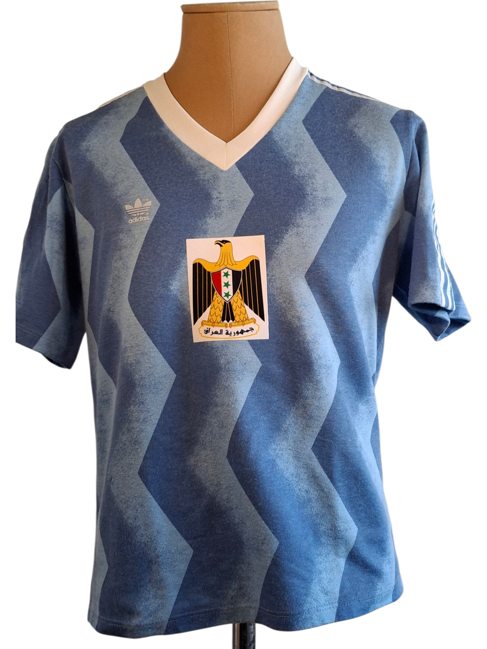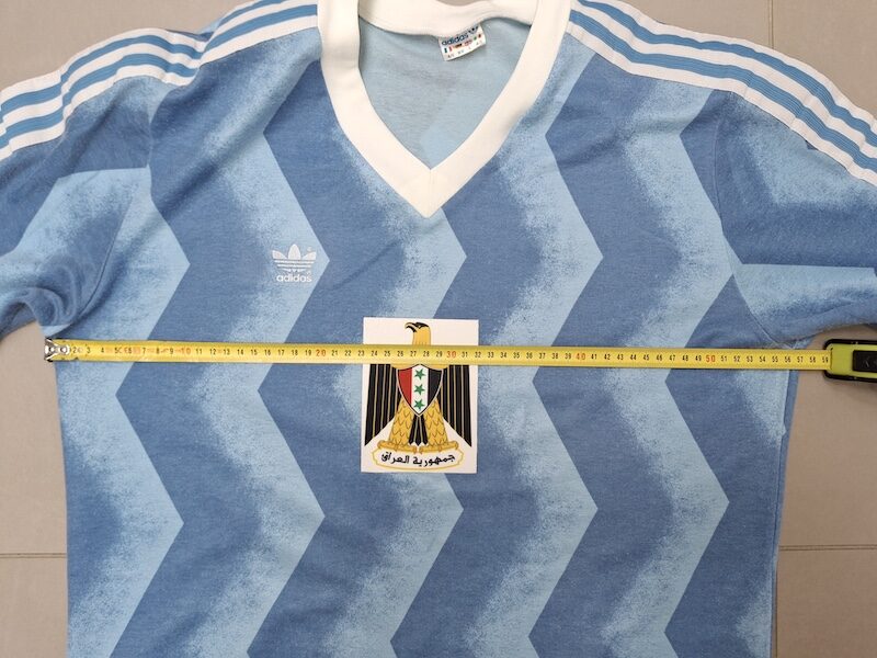Maillot bleu à motifs subtils, porté lors de la seule participation de l’Irak à une Coupe du Monde 1986 au Mexique.