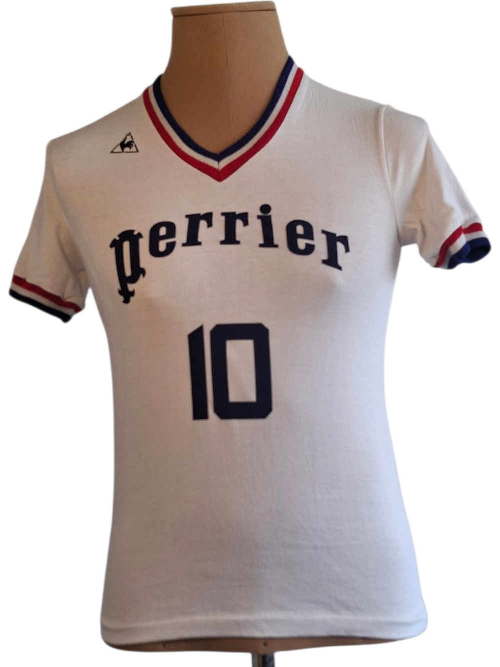Maillot vierge Le Coq Sportif original vintage des annees 1970 refloqué récemment avec de la feutrine identique à l’original